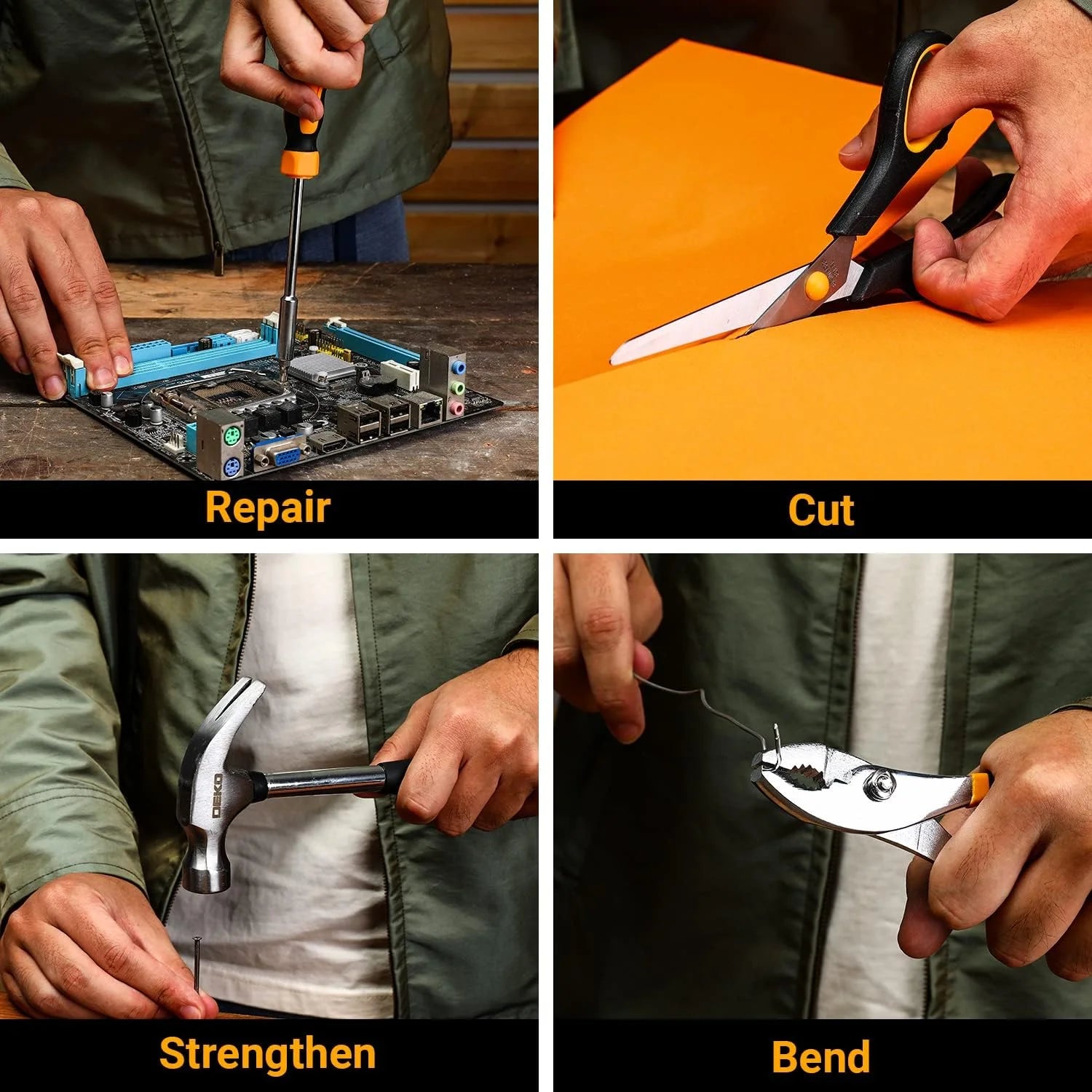 Upgrade your DIY projects with the DEKODIY 50-piece general household hand tool kit.